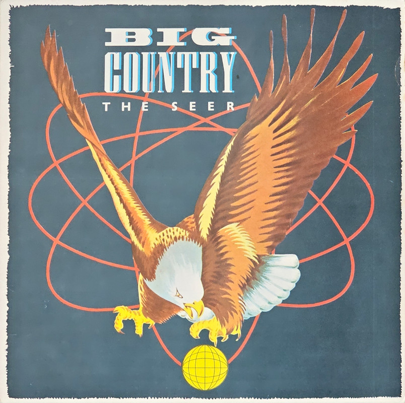 The Seer (Netherlands), 826 844-1 © 1986 Phonogram Ltd. (London) / Mercury / 10 Music Ltd. Released July 1986 in right-opening card box-sleeve with black top and side print, paper lyric inner, black/colour printed labels. Side One: 1 Look Away (Stuart Adamson) (4:23), 2 The Seer (Adamson/Watson) (5:26), 3 The Teacher (Stuart Adamson) (4:05), 4 I Walk The Hill (Adamson/Brzezicki/Butler) (3:30), 5 Eiledon (Stuart Adamson) (5:35). Side Two: 1 One Great Thing (Adamson/Butler) (4:01), 2 Hold The Heart (Stuart Adamson) (6:08), 3 Remembrance Day (Adamson/Butler/Watson) (4:30), 4 The Red Fox (Stuart Adamson) (4:11), 5 The Sailor (Adamson/Brzezicki) (4:53). ℗ 1986 Phonogram Ltd., London. Produced by R. Millar. Additional Production and Mixed by Walter Turbitt. Engineered by Will Gosling. Assistant Engineers: Dave Anderson, Phil Legg, Nick Lacey, Russell Leahy. Additional vocals on 'The Seer' by Kate Bush. Backing vocals on 'Remembrance Day' & Eiledon by June Miles-Kingston. Bodhran: Davie Duncan. Recorded at The Power Plant & RAK Studios. Mixed at Maison Rouge. Made in Holland. Sleeve by J.B. Illustrated by David Da Silva. Marketed by Phonogram. Printed in the Netherlands. Rights Societies: B.I.E.M. / STEMRA. Runout text: (1) "826 844 1 1Y 1 ℗ 1986 670 04 1 12" (stamped), (2) "826 844 1 2Y 1 ℗ 1986 670 04 1 2 2" (stamped). Also available on Chrome Cassette 826844-4 and Compact Disc. The track titles on the record labels are in sentence case and listed on the rear cover and lyric inner in alphabetical order (omitting the "I" in "I Walk The Hill"). The mark under the blue cog on the back cover is an error on the image, replicated on every cover of this release. |