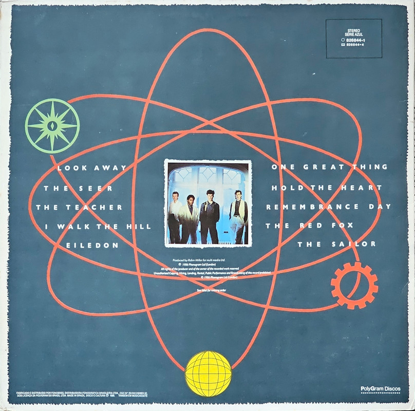 The Seer (Brazil), 826 844-1 © 1986 Phonogram Ltd. (London) / Mercury / 10 Music Ltd. Released: 1986 in right-opening narrow card box-sleeve with black spine print, matt paper b&w lyric insert, plastic inner, colour printed label. Side One: 1 Look Away (Stuart Adamson) (4:23), 2 The Seer (Adamson/Watson) (5:26), 3 The Teacher (Stuart Adamson) (4:05), 4 I Walk The Hill (Adamson/Brzezicki/Butler) (3:30), 5 Eiledon (Stuart Adamson) (5:35). Side Two: 1 One Great Thing (Adamson/Butler) (4:01), 2 Hold The Heart (Stuart Adamson) (6:08), 3 Remembrance Day (Adamson/Butler/Watson) (4:30), 4 The Red Fox (Stuart Adamson) (4:11), 5 The Sailor (Adamson/Brzezicki) (4:53). ℗ 1986 Série AZUL. ℗ 1986 Phonogram Ltd., London. Stuart Adamson: Vocals, Guitar, E-Bow; Mark Brzezicki: Drums, Percussion, Backing Vocals; Tony Butler: Bass, Bass Pedals, Backing Vocals; Bruce Watson: Guitar, Mandolin, Sitar; Original Production: Robin Millar, Mixed by: Walter Turbitt; Engineered by: Will Gosling; Assistant Engineers: Dave Anderson, Phil Legg, Nick Lacey, Russell Leahy. Additional vocals on 'The Seer' by Kate Bush. Backing vocals on 'Remembrance Day' & Eiledon by June Miles-Kingston. Bodhran: Davie Duncan. Sleeve by J.B. (Julian Balme); Illustrated by David Da Silva; Recorded at The Power Plant & RAK Studios, Mixed at Maison Rouge. Kate Bush Appears courtesy of EMI Records. Management: Grant·Edwards. Manufactured by Polygram Inc. Distributed by Polygram Distribution Inc. Made in Brazil. CGC no 29.101.519/0001-32 sob licenca da Polygram do Brasil Ltda. Record Company: Polygram do Brasil Ltda. Fabricado e distribuido por Fonobrás, Distribuidora Fonográfica Brasileira Ltda. Spine text:BIG COUNTRY · THE SEER · MERCURY 826844-1. Runout text: (1) "826 844 1 1 01 ℗ 1986 200", (2) "826 844 1 2 01 ℗ 1986 200" (both etched). Também em Musicassette 826 844-4. Lyric sheet states: "Este encarte pertence ao LP 826 844-1. Nao pode ser vendido separadamente" ("This insert belongs to LP 826 844-1. Cannot be sold separately"). Sleeve is a lower-quality copy of the original, over-printed with additional text on the rear. The track titles on the rear cover are listed in album order. |