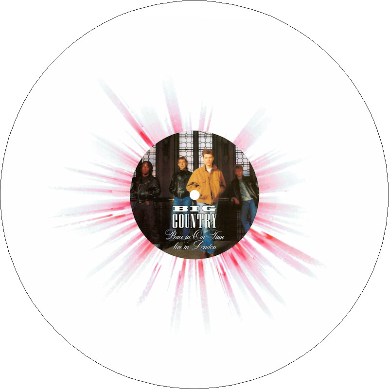 Peace In Our Time Live in London (Promo), BCL89 Released May 2025 in right-opening gloss card box sleeve w/spine print, round-ended plastic inner, 5x white/splatter vinyl w/colour paper labels. Side A: 1 Peace In Our Time, 2 Wonderland, 3 Thirteen Valleys, 4 The Seer. Side B: 1 River Of Hope, 2 In A Big Country, 3 East Of Eden, 4 Restless Natives. Limited Edition of 20 copies. Recorded at Hammersmith Odeon, London, 23rd January 1989. Big Country are: Stuart Adamson, Bruce Watson, Tony Butler, Mark Brzezicki. Spine text: "BIG COUNTRY PEACE IN OUR TIME BCL89". Runouts: (A,C,E,G,I) "18258 - 157067 A2 [infinity]", (B,D,F,H,J) "18258 - 157067 B [infinity]" (both etched).